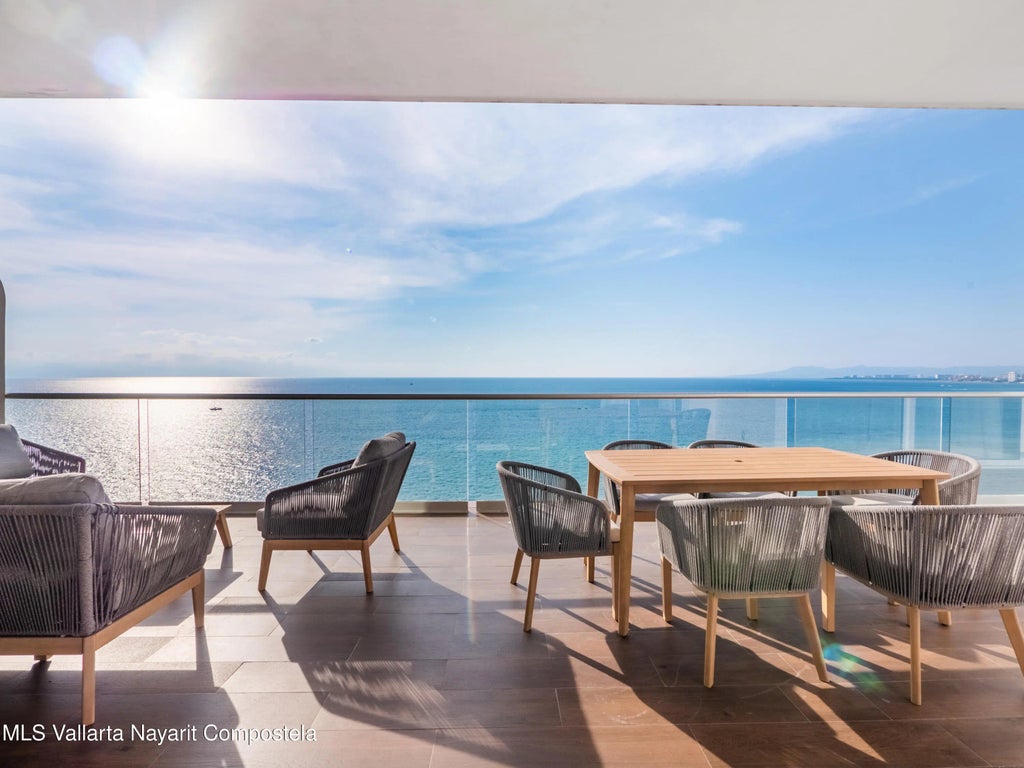 This lovely PH Beachfront 3 bedroom 3 bathroom boasts high ceiling, wide panoramic views so much so that you could almost reach out and touch the migrating whales and dolphins displaying their navigational abilities right in front of you. Whether you're looking to the downtown area or at the sunset you'll have some of the best beachfront views in the entire Bay of Banderas. The unit has over 100 K of upgrades and was original owned by the developer of Harbor himself. Crate Interiors did the professional name-brand furniture package worth well over 100 K as well. The Harbor community itself is located beachfront, only a 20-25 minute walk to the famous downtown Malecon and just minutes away from many 5 star restaurants, Costco, Walmart, Soriana, La Comer, etc. Sit back & enjoy luxury!