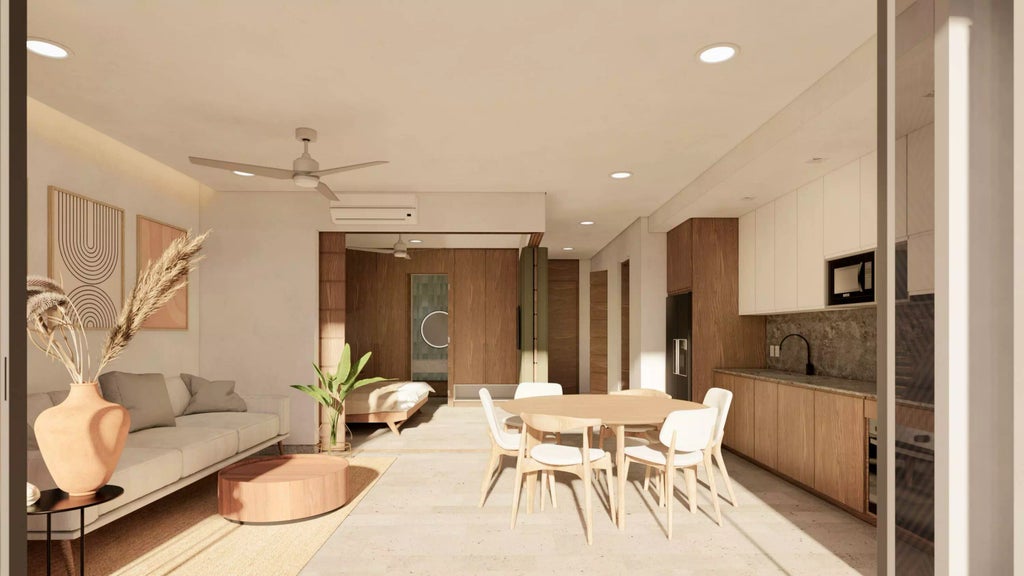 Discover your paradise at Nalua, where luxury meets affordability in the heart of the Golden Zone of Bucerias, just steps from the beach. Nalua offers 37 residential units with 7 unique layouts to choose from, each designed for modern and comfortable living. From spacious layouts perfect for entertaining to a rooftop terrace with breathtaking views, every detail has been carefully designed to enhance your lifestyle.The condominium showcases refined touches including marble flooring, porcelain tile flooring in the bedroom, and melamine cabinetry with granite countertops in the kitchen. Appliances such as microwaves and gas ovens add to the allure of the space.