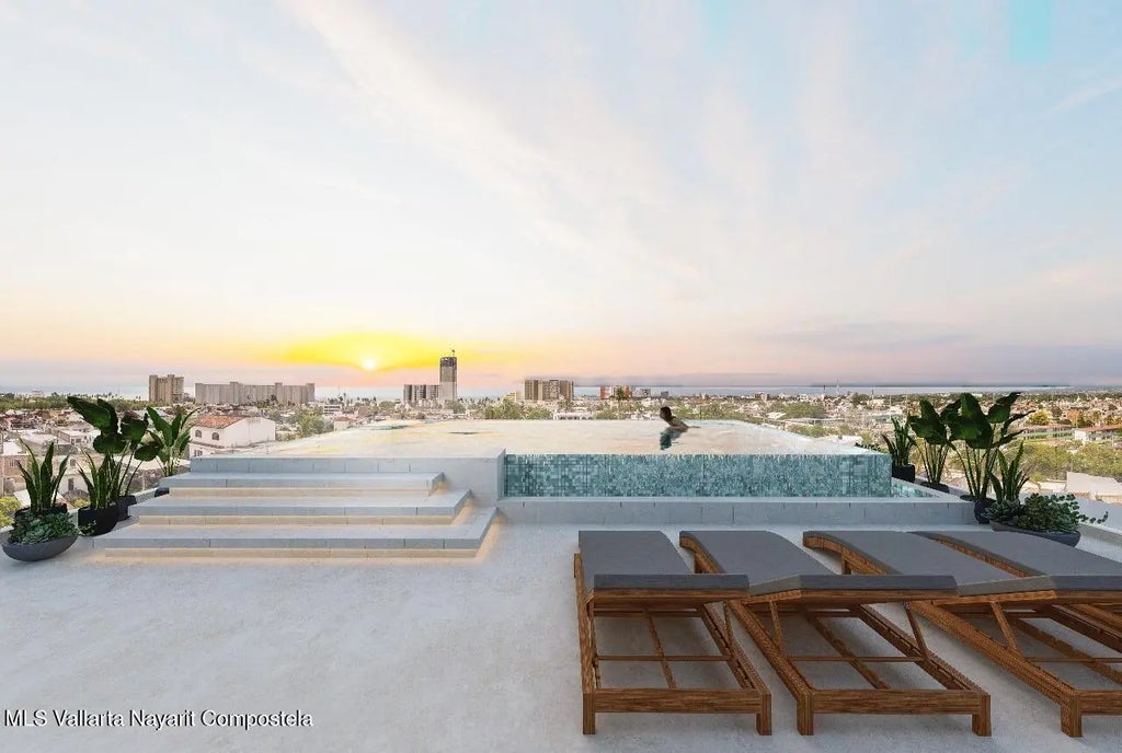 Charming condominium in PV, 166.3 m on one level, featuring 2 bedrooms + 2 bathrooms. Centrally located in a walkable area with no steep hills, just 15 minutes from shops and the Malecon. Enjoy rooftop amenities, including an infinity pool with ocean views, a grill area, and flexible spaces for relaxation. Experience affordable luxury in this inviting home!Encantador condominio en PV, de 166.3 m² en una sola planta, cuenta con 2 recámaras + 2 baños. Ubicado céntricamente en una zona transitable y sin colinas pronunciadas, a sólo 15 minutos de los comercios y del Malecón. Disfrute de las comodidades de la azotea, que incluyen una piscina infinita con vista al mar, un área de barbacoa y espacios flexibles para relajarse. ¡Experimente el lujo asequible en esta acogedora casa!