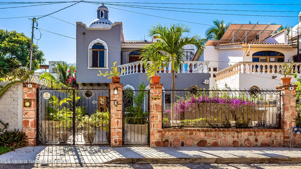Charming Mexican Home with Private Dipping Pool in Bucerias' Golden Zone Discover the perfect winter retreat just a 5-minute stroll from Bucerias beach. Nestled in the coveted Golden Zone, this 3-bedroom, 2.5-bathroom home offers authentic Mexican charm with Cantera stone, hand-painted tiles, brick accents, and a cooling cupola. Solid primavera wood cabinetry, a large pantry, and a balcony off the primary bedroom add comfort. Thoughtfully designed with a main-level bedroom and two upstairs, the property also features a private pool with side access, secured parking, wrought iron grilles, and a security system. Fully furnished with AC, fan, and TV upgrades, it's ready to enjoy or personalize with fresh paint. Your Bucerias paradise awaits--schedule your showing today!