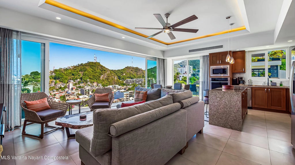 From one of the most sought-after developers in Puerto Vallarta, we bring you V-Estrella unit 304 by HEVA. This 2 bedroom, 2.5 bath, corner, 1,869 square foot condo is beautifully decorated and boasts incredible mountain and ocean views from the living, dining and kitchen. With only 24 private units, V-Estrella feels more like a home than a condominium complex and although just minutes from Old Town, V-Estrella is in the quiet neighborhood of Alta Vista. This unit also includes deeded parking and bodega.Indulge in resort-like amenities including a heated pool with panoramic ocean and mountain views, jacuzzi, state of the art gym and lush jungle surroundings.
