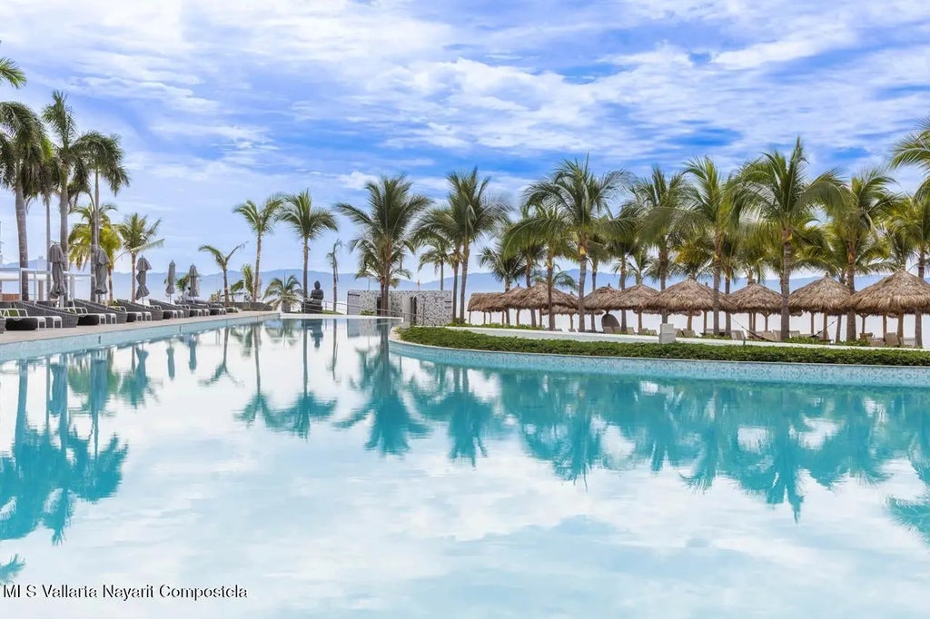 This trendy, stylish, and effortlessly cool 3rd-floor residence blends modern sophistication with resort-style luxury, offering peek views of the bay, lush gardens, and surrounding mountains. Designed for both relaxation and entertaining, the open-concept layout features a high-end chef's kitchen with a waterfall-edge granite island, sleek stainless-steel appliances, and custom cabinetry, all complemented by a stylish bar seating area. The bright and airy living and dining spaces flow onto an oversized covered terrace, a private retreat framed by swaying palms and tropical gardens. Two restful and serene bedrooms open onto a spacious private terrace, capturing territorial and peek ocean views.Spa-inspired bathrooms, zoned air conditioning, and an in-unit laundry center ensure comfort and convenience. Located within a prestigious beachfront resort, residents enjoy access to world-class amenities, including infinity-edge rooftop pools, a sleek bar/lounge, a state-of-the-art gym, a private theater, beachfront palapas, and paddle-ball courts. Secure parking and 24-hour security provide peace of mind. Offered fully furnished and turnkey, this is the ultimate coastal retreata luxurious escape for those seeking effortless elegance, modern comfort, and five-star resort living. A rare gem at an exceptional value, this home is an absolute must-see. ------- Esta moderna, elegante y sofisticada residencia en el tercer piso combina modernidad y lujo al estilo de un complejo turístico con vistas panorámicas a la bahía, a los exuberantes jardines y a las montañas cercanas. Diseñado tanto para relajarse como para entretenerse, el diseño abierto cuenta con una cocina tipo chef de alta gama con una isla de granito con borde en cascada, elegantes electrodomésticos de acero inoxidable y gabinetes personalizados, complementado con una elegante zona de bar. La sala y el comedor son amplios e iluminados y comunican con una gran terraza cubierta, un refugio privado rodeado de palmeras y jardines tropicales. Cuenta con dos habitaciones tranquilas y silenciosas que conducen a una espaciosa terraza privada con vistas al paisaje y al océano. Los baños tipo spa, el aire acondicionado por zonas y el centro de lavandería dentro de la unidad garantizan comodidad y confort. Situado dentro de un prestigioso complejo frente al mar, los residentes disfrutan de acceso a servicios de clase mundial, incluyendo albercas infinity-edge en la azotea, un elegante bar / salón, un gimnasio de última generación, un cine privado, palapas frente al mar, y canchas de paddle. Un aparcamiento vigilado y seguridad las 24 horas proporcionan tranquilidad. Se ofrece totalmente amueblado y llave en mano, este es el mejor refugio en la playa, un escape de lujo para quienes buscan elegancia sin esfuerzo, comodidad moderna y un estilo de vida de cinco estrellas. Una joya única a un valor excepcional, esta casa es una visita obligada.