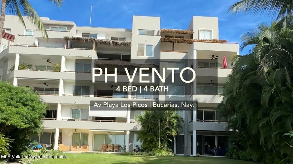 CONDO VENTO is a 4-bedroom ocean view condo listed at $1,075,000 USD ($20,000,000 MXN) in Bucerias, Riviera Nayarit. This 3,008 sq ft, furnished, pool access property is currently available. Recently reduced by $100,000 USD.