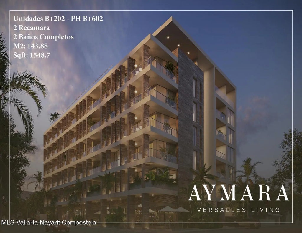 Aymara Versalles, ubicado en el centro de la Colonia Versalles, Sobre calle Aldanaca yBerlin, es un proyecto unico y exclusivo que consta de 43 espectaculares departamentos y7 locales comerciales con una propuesta y diseno inigualable. Los departamentos tienen un area desde 64.55 m2 hasta los 143.88 m2. Se configura el edificio de 12 unidades de unarecamara y 1.5 Banos (Tipo A). Hay 16 unidades de 2 recamaras 2 banos completos (Tipo B). 5 unidades de 2 recamaras 2.5 Banos completos (Tipo B+), y 10 unidades de 3 recamaras 3 banos completos (Tipo C).Los acabados premium, las amplias terrazas, las increibles areas comunes, las encantadoras vistas y todo aquello que conforma el proyecto lo hace ser la mejor Inversion