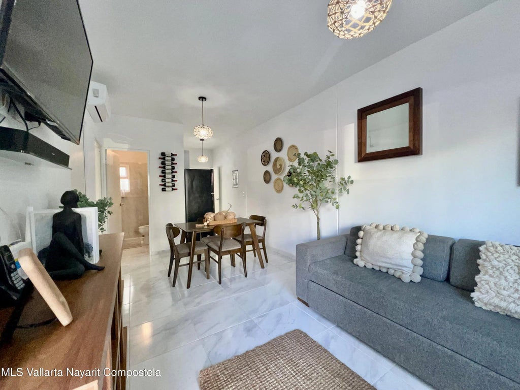 Departamento en planta baja en el fraccionamiento Azul Peninsula, Puerto Vallarta. Cuenta con 2 recamaras con closet, 1 bano completo, cocina equipada, sala-comedor, patio privado, amueblado y un cajon de estacionamiento. El desarrollo ofrece alberca comun, area de juegos infantiles, areas verdes, seguridad 24/7 y acceso controlado. Precio: $2,206,000 MXN.Ground floor apartment located in the Azul Península gated community in Puerto Vallarta. It features 2 bedrooms with closets, 1 full bathroom, an equipped kitchen, living-dining area, private patio, comes furnished, and includes one parking space. The community offers a shared pool, children's playground, green areas, 24/7 security, and controlled access. Price: $2,206,000 MXN.