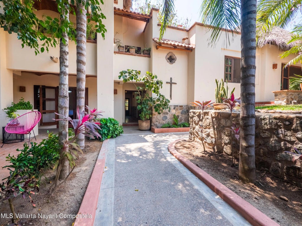 Welcome to your dream retreat in the heart of the charming beach town of Lo de Marcos. This beautifully designed six-bedroom Hacienda is just steps from the golden sands and offers a rare blend of comfort, privacy, and income potential.The main house features spacious, open-concept living areas under a stunning palapa that invites seamless indoor-outdoor living. It includes three generous bedrooms plus a bonus room that can easily serve as a fourth bedroom, office, or studio space. The rooftop lounge boasts panoramic views of the ocean and mountains--perfect for sunset cocktails or stargazing.The lush, walled property is surrounded by mature trees and vibrant gardens, offering both shade and seclusion.Two independent studio units provide ideal accommodations for guests or attractive rental opportunities. With two separate entrances and a large two-car garage, the layout is flexible and functional. Relax in the jacuzzi/plunge pool, or take advantage of the ample space to install a larger pool. Whether you're seeking a serene family home or a high-performing vacation rental, this unique property offers it allwith the soothing sound of crashing waves in the background. Bienvenido a su retiro de ensueño en el corazón de la encantadora ciudad de playa de Lo de Marcos. Esta Hacienda de seis dormitorios bellamente diseñada está a pocos pasos de las arenas doradas y ofrece una rara mezcla de confort, privacidad y potencial de ingresos. La casa principal cuenta con amplias zonas de estar de concepto abierto bajo una palapa impresionante que invita a la vida interior-exterior sin fisuras. Incluye tres amplios dormitorios, además de una sala de bonificación que puede servir fácilmente como un cuarto dormitorio, oficina o estudio. El salón de la azotea ofrece vistas panorámicas del océano y las montañas, perfecto para tomar un cóctel al atardecer o contemplar las estrellas. La exuberante propiedad amurallada está rodeada de árboles maduros y jardines vibrantes, que ofrecen sombra y aislamiento. Dos estudios independientes ofrecen alojamiento ideal para huéspedes o atractivas oportunidades de alquiler. Con dos entradas independientes y un amplio garaje para dos coches, la distribución es flexible y funcional. Relájese en el jacuzzi/piscina de inmersión, o aproveche el amplio espacio para instalar una piscina más grande. Si usted está buscando una casa de familia serena o un alquiler de vacaciones de alto rendimiento, esta propiedad única ofrece todo, con el relajante sonido de las olas de fondo.