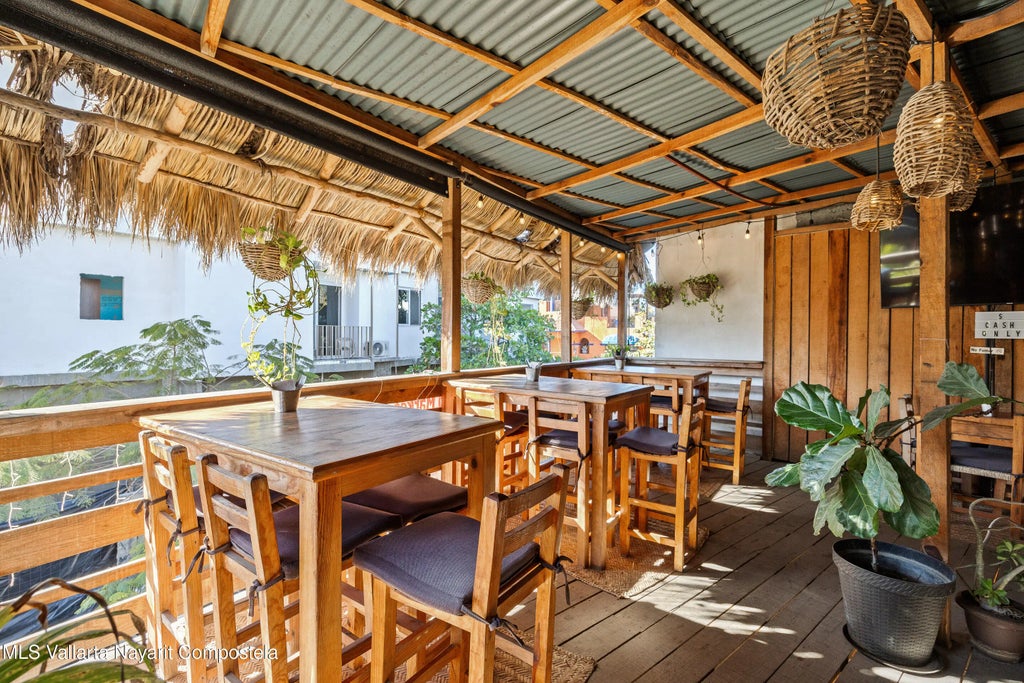 Discover a prime commercial property in a vibrant San Pancho locale. The ground floor is currently home to a sophisticated luxury food court, featuring several renowned restaurants and a bar, as well as a high-end hair salon and stylist. Above, the third floor comprises four well-appointed living units, with approved plans and structural support for the addition of four more units on the fourth floor. This impressive 250 square meter corner lot enjoys a strategic position on the main thoroughfare and the final street running parallel to the ocean, establishing it as one of San Pancho's premier locations. Commercially zoned and brimming with potential, this site is ideal for a visionary developer looking to create a distinctive condo or hotel in an unbeatable setting.