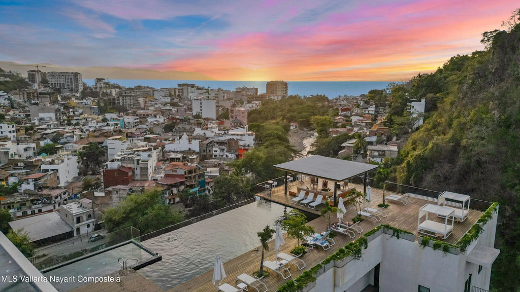 English Below <p>Bienvenido a Oasis en Rivera Cuale 910 -- un refugio tranquilo a solo unos pasos del corazon de la Zona Romantica.Este luminoso y ventilado departamento en el noveno piso ofrece un plano abierto,techos de 3.65 metros, con una distribucion flexible de 1 recamara y 1 bano, con impresionantes vistas al mar, al rio y a las montanas.Este nuevo desarrollo cuenta con amenidades estilo resort, que incluyen alberca en la azotea, jacuzzi, snack bar, fogatero, area de asador, camastros con sol y sombra, gimnasio, multiples espacios de coworking y un jardin tropical con una alberca adicional en planta baja. El edificio tambien ofrece seguridad 24 horas y servicio de concierge.La propiedad se entrega parcialmente amueblada e incluye electrodomesticos de cocina en aceroinoxidable, así como centro de lavado Disfruta de la cercanía a galerías de arte, una gran variedad de restaurantes, vida nocturna y la playa de Los Muertos. Este hogar está listo para habitarse y ofrece un gran potencial como propiedad vacacional, segunda residencia, vivienda permanente o una combinación adaptada a tus necesidades diarias. Welcome to Oasis at Rivera Cuale 910 a tranquil retreat just steps from the heart of Zona Romántica. This bright and airy 9th-floor home features an open floor plan with 12' ceilings, a 1-bedroom flex layout and 1 bathroom, offering stunning ocean, river, and mountain views. The newly built development boasts resort-style amenities, including a rooftop pool, jacuzzi, snack bar, fire pit, BBQ area, sun and shade loungers, a fitness center, multiple co-working spaces, and a lush tropical garden with an additional ground-floor pool. The building also offers 24-hour security and concierge service. The property is partially furnished and includes stainless steel kitchen appliances as well as a washer and dryer. Enjoy easy access to art galleries, a wide variety of restaurants, vibrant nightlife, and Los Muertos Beach. This home is move-in ready and offers exceptional potential as a vacation rental, a home away from home, a permanent residence or a combination of all, tailored to your daily needs.