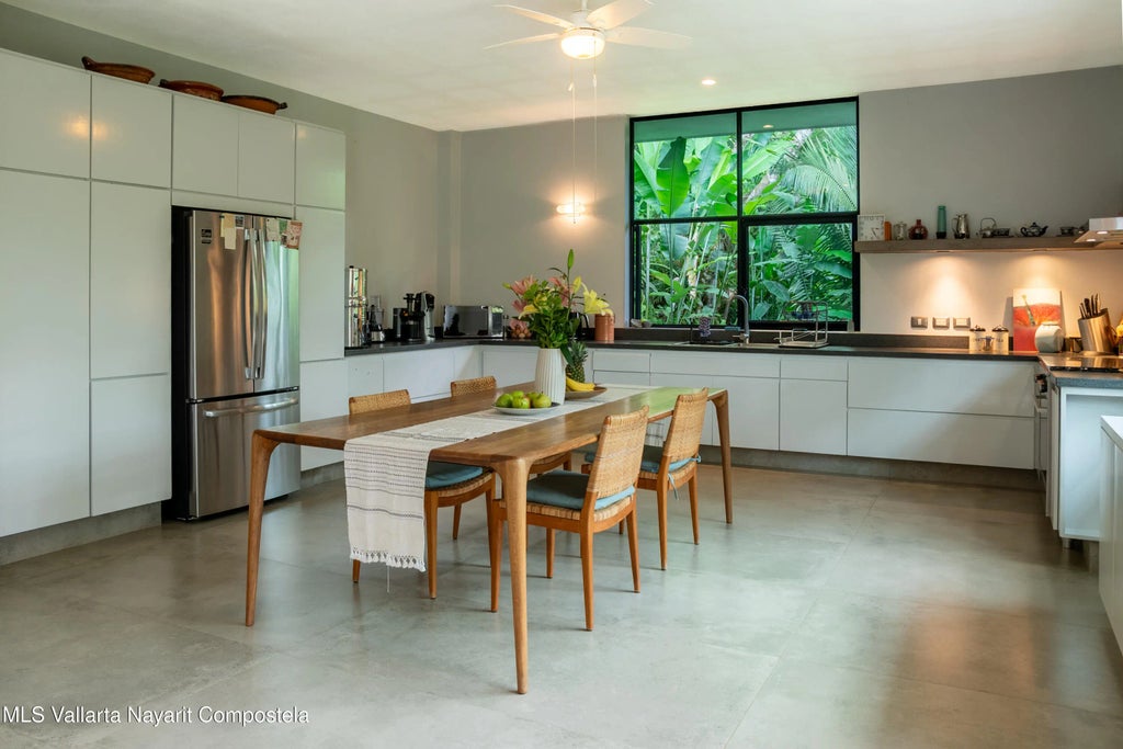 This Property is TITLED!Property located in beautiful Sayulita in a ranch style neighborhood of Estropajera in Sayulita. Located just a 5-minute drive (or 15-minute walk) from Sayulita's vibrant downtown and beaches, Casa Rocas offers serene jungle and mountain views.This area is know for its large parcels and ranches. Discover Rocas Estate, this property countains a home that was built in 2020, a striking modern Bauhaus-style building of 321 square meters, nestled in the lush hills of southeastern Sayulita. The land area measures approximately 21,500 square meters. The property is great as it has a mixture of flat and sloped areas. There is easy road access with beautiful jungle views from the property. For water you will find private well on the property.This property features a two-bedroom suite with separate entrances, spacious terraces and a patio that give the feeling of bringing the outdoors into the home. On the ground floor, there is a completely independent studio with one bedroom, one bathroom, and a kitchen with its own entrance and garden. Adjacent to this is a large open-concept storage room with endless possibilities, whether converting it into more bedrooms or another independent apartment, maintaining it as a workspace, etc. The incredible tropical gardens have enough space to integrate a pool or create your own vegetable gardens. An automatic irrigation system, town water, ample storage space, a wine cellar, laundry facilities, and parking for three cars. This is a great property as it also offers the possibility to subdivide and sell each lot as its own property.