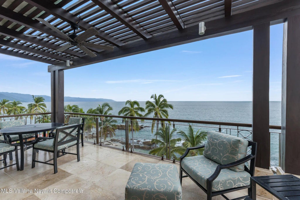 (English below) Disfrute de vistas panoramicas al mar en esta impresionante unidad de 2 recamaras y 2 banos en V Conchas Chinas. Amplias puertas corredizas se abren a una espaciosa terraza con vistas al mar rodeadas de palmeras, perfecta para un cafe por la manana o un coctel al atardecer.Enjoy panoramic ocean views in this stunning 2-bedroom, 2-bath unit at V Conchas Chinas. Expansive sliding doors open to a spacious terrace with palm-framed ocean vistas, perfect for morning coffee or sunset cocktails.The primary bedroom offers an en-suite bathroom, while the second bedroom provides comfort for guests or flexibility as a home office.Enjoy resort-style living with a rooftop infinity pool, lounge areas, and some of the best sunsets in Vallarta.