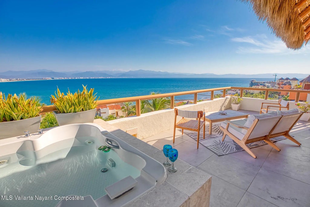 THE VIEWS! EXPANSIVE OCEAN AND MOUNTAIN VIEWS. WELCOME TO PENTHOUSE 502 JACARANDA, PUNTA ESMERALDA This condo is laid out in a spacious, ranch-style layout. All on one level! Enjoying four bedrooms , four en-suite bathrooms for ultimate privacy and comfort. The upgraded kitchen is ideal for entertaining, wine cooler, walk in pantry while the kitchen, living and dining areas features a charming palapa roof that adds authentic Mexican flair frames dining areas . The master suite also features a palapa roof, double sinks, walk in closets. Enjoy luxury amenities including 8 pools, a private beach club, a state-of-the-art gym, spa, and tennis/pickle ball courts. With breathtaking views of the Banderas Bay coastline. THE ULTIMATE COSTAL RETREAT! Easy to show, some rental history