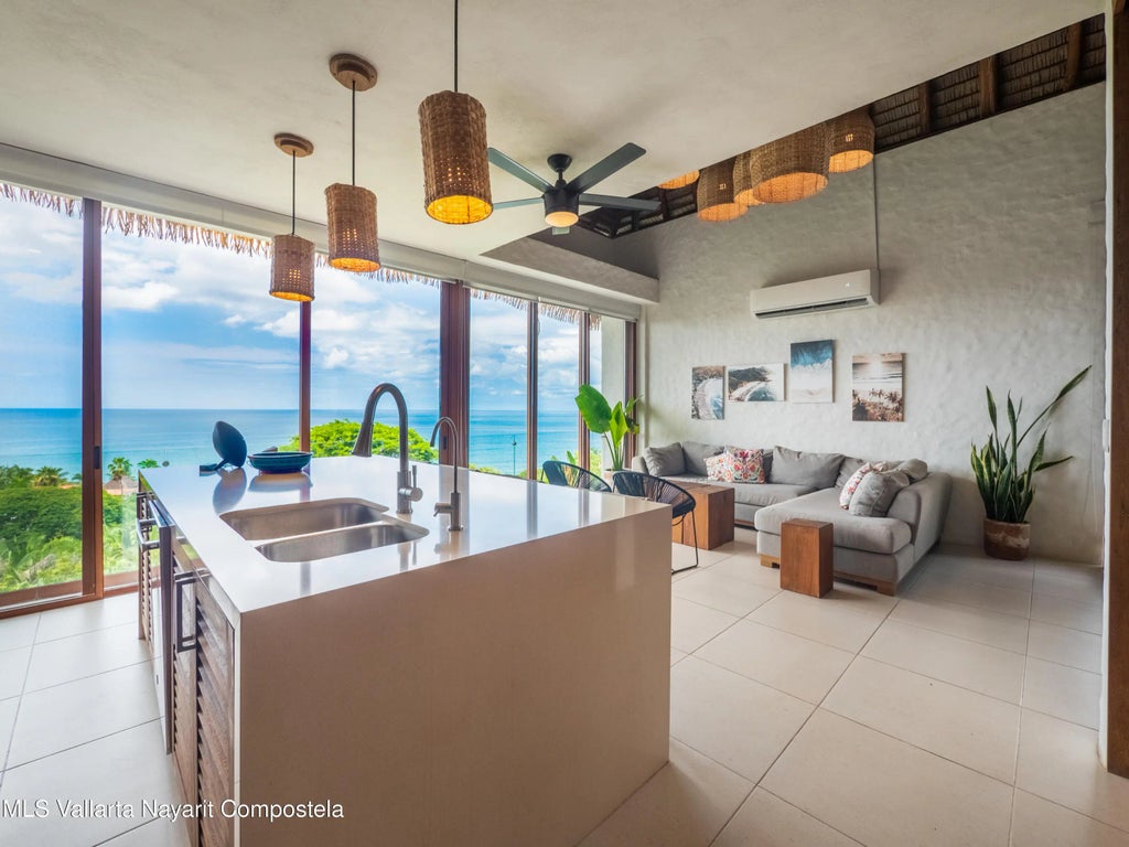 Casa Chingon is a modern 2-bedroom, 2-bathroom condo with 219 square meters of sleek design and some of the most dramatic ocean views in Sayulita. Perched in a gated hillside community, this residence is part of an exclusive four-unit building that shares a beautifully landscaped pool. Floor-to-ceiling windows showcase panoramic Pacific vistas, while premium finishes and appliances including refrigerator/freezer, washer, dryer, and air conditioning deliver everyday comfort. With private storage and on-site parking, Casa Chingon blends style, convenience, and natural beauty, offering an elevated retreat in one of Sayulita's most sought-after settings.Casa Chingón es un moderno condominio de 2 recámaras y 2 baños con 219 metros cuadrados de elegante diseño y algunas de las vistas al mar más espectaculares de Sayulita. Ubicada en una comunidad privada en la ladera, esta residencia forma parte de un exclusivo edificio de cuatro unidades que comparten una hermosa piscina ajardinada. Los ventanales de piso a techo ofrecen vistas panorámicas del Pacífico, mientras que los acabados y electrodomésticos de primera calidad, como refrigerador/congelador, lavadora, secadora y aire acondicionado, brindan comodidad diaria. Con almacenamiento privado y estacionamiento en el lugar, Casa Chingón combina estilo, conveniencia y belleza natural, ofreciendo un refugio de lujo en uno de los entornos más codiciados de Sayulita.