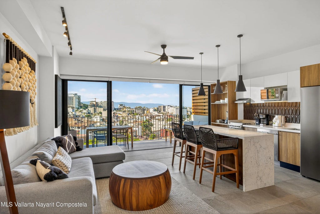 This beautiful 1 bedroom condo has everything you could want! Being on the 7th floor you have mountain, city, ocean and river views! The building is located on the flat, just behind the romantic zone, so there are no hills to climb and you have easy walking access to all the activities of the Romantic Zone like beach clubs and night life. As well, you have endless options for great restaurants and cafes nearby. This very tidy unit comes turn-key and furnished to a high standard with custom made furniture. Whether you're looking for a rental property, a vacation property or somewhere to live full time, this condo at Oasis Riviera Cuale is perfect! The building has first class amenities which include two heated swimming pools, Jacuzzi, fire pit, on-site bar and food service, gym, beautiful wide open lobby, Work space, Lush gardens, on-site administration and on-site security. Don't delay, contact me today to Schedule your showing! Spanish: Este hermoso condominio de 1 recámara tiene todo lo que podrías desear. Ubicado en el 7th piso, ofrece espectaculares vistas a las montañas, la ciudad, el océano y el río. El edificio se encuentra en una zona plana, justo detrás de la Zona Romántica, por lo que no hay colinas que subir y se puede llegar caminando fácilmente a todas las actividades de la Zona Romántica, como clubes de playa y vida nocturna. Además, hay una amplia variedad de excelentes restaurantes y cafés en los alrededores. Esta unidad, muy bien cuidada, se entrega llave en mano y totalmente amueblada, con muebles hechos a la medida y acabados de alto nivel. Ya sea que estés buscando una propiedad para renta, una residencia vacacional o un hogar para vivir tiempo completo, este condominio en Oasis Riviera Cuale es la opción ideal. El edificio cuenta con amenidades de primer nivel, que incluyen dos albercas climatizadas, jacuzzi, fogatero, bar y servicio de alimentos en el lugar, gimnasio, un amplio y elegante lobby, área de trabajo, jardines exuberantes, administración en sitio y seguridad 24/7. No lo dejes pasar. Contáctame hoy mismo para agendar tu visita.