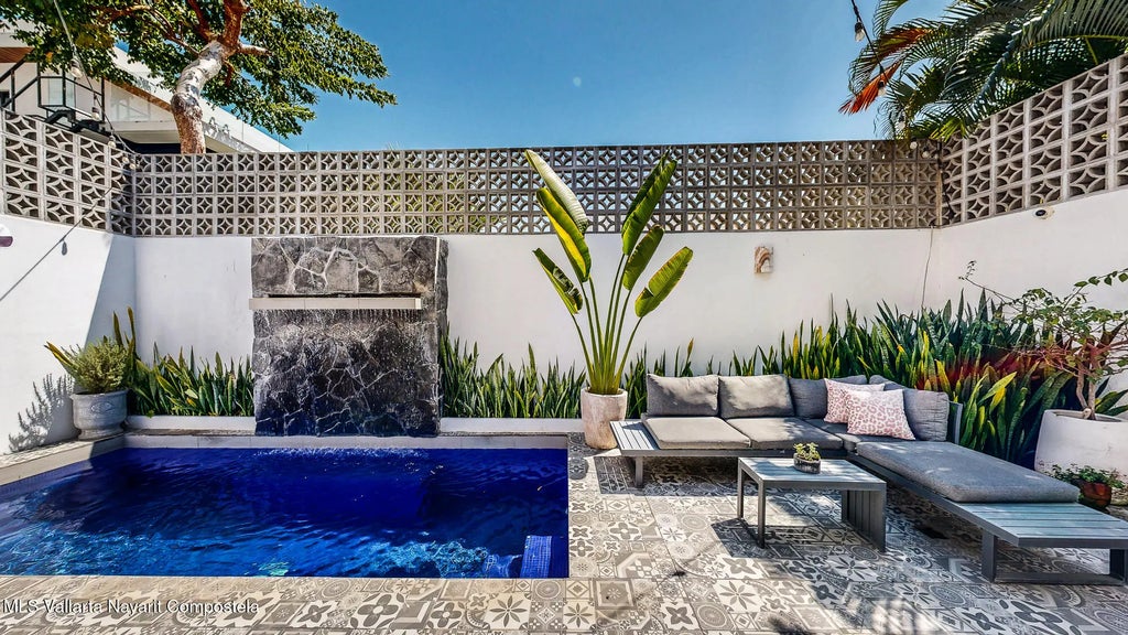 Experience the ultimate retirement lifestyle in this meticulously maintained, one-owner sanctuary. Nestled in one of Bucerias' most sought-after areas, this 3-bedroom, 2.5-bath residence is the gold standard of ''pride of ownership.'' From its dramatic vaulted ceilings to its robust sustainable upgrades, every inch of this home has been curated for comfort, security, and effortless entertaining. The moment you step through the front door, you are greeted by a dramatic vaulted-ceiling entryway with artistic cut-out windows that bathe the space in natural light. A true retreat featuring a massive walk-in closet with custom built-ins and direct access via sliding glass doors to your private pool. The third bedroom/den offers dual entry options and a built-in desk, perfect for a home office or a hobby room. Enjoy the ambiance of warm pot lights and cool recessed lighting throughout, complemented by premium blackout drapes and UV-tinted windows for maximum climate control. The crown jewel of this property is the expansive rooftop palapa (New May 2023). Built with the highest quality palms and posts, this space features tiled countertops, built-in seating, and is wired for a beer fridge and ceiling fans--making it the premier spot for sunset cocktails or morning yoga. On the ground level, a private plunge pool with a soothing fountain and built-in bench awaits. A dedicated "breezeway" allows pool maintenance professionals to service your oasis without ever entering the main house. This home isn't just beautiful; it's built for the future. For the savvy buyer, the technical upgrades provide unmatched value: 8 solar panels and an upgraded main power breaker (2025). A whole-house 3-filter system with UV light, plus secondary under-sink filtration for drinking water and ice. A comprehensive Sepepsa-monitored alarm system with motion detectors and 4 hard-wired cameras. From the on-demand hot water unit to the 5 meticulously serviced A/C units and low-maintenance landscaping, this home is "vacation-ready" year-round. Book your showing today. VIRTUAL TOUR AVAILBLE.